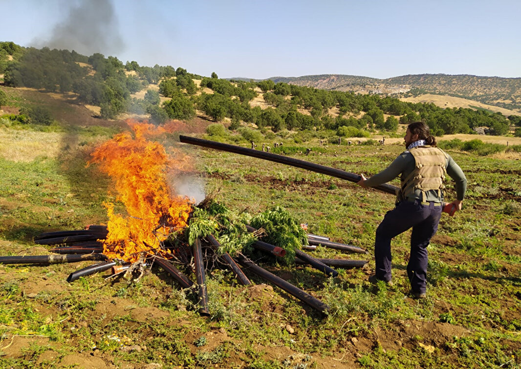 - Operasyonda, 83 farklı noktada 9 milyon 187 bin kök Hint keneviri, arazide kayalık alan ve çalılar arasına gizlenmiş poşetler ve çuvallar içerisinde 1 ton 183 kilogram esrar, kenevirleri sulamak amacıyla tarlaların içerisinde kurulu şekilde tespit edilen 11 bin 45 metre uzunluğundaki su hortumu, borusu, 8 su motoru ve su pompası ele geçirildi.