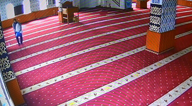 Ezan okumak için camiye gelen caminin imamı, ses cihazının olduğu odaya girince cihazın yerinde olmadığını fark etti. Güvenlik kameralarını izleyen imam, ses cihazının bir kişi tarafından çalındığını gördü.