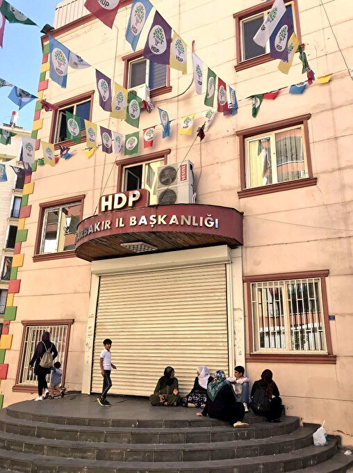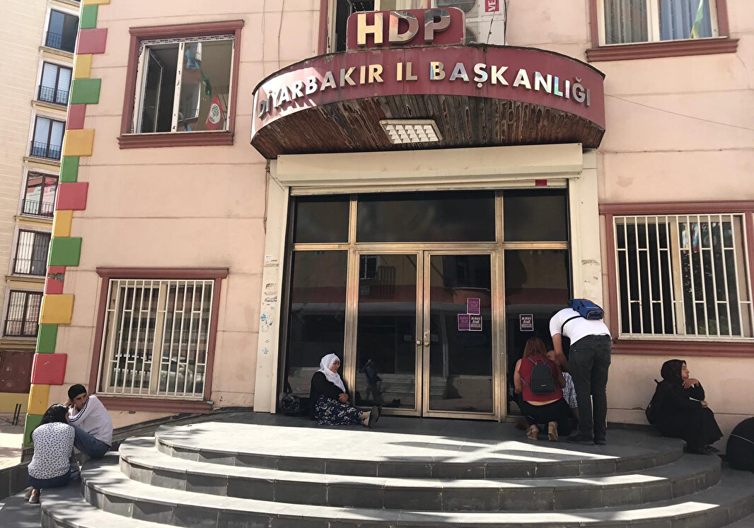Acılı ailelerin bekleyişini sürdürdüğü HDP Diyarbakır İl Başkanlığı binasının kepenkleri, yetkililer tarafından indirildi.