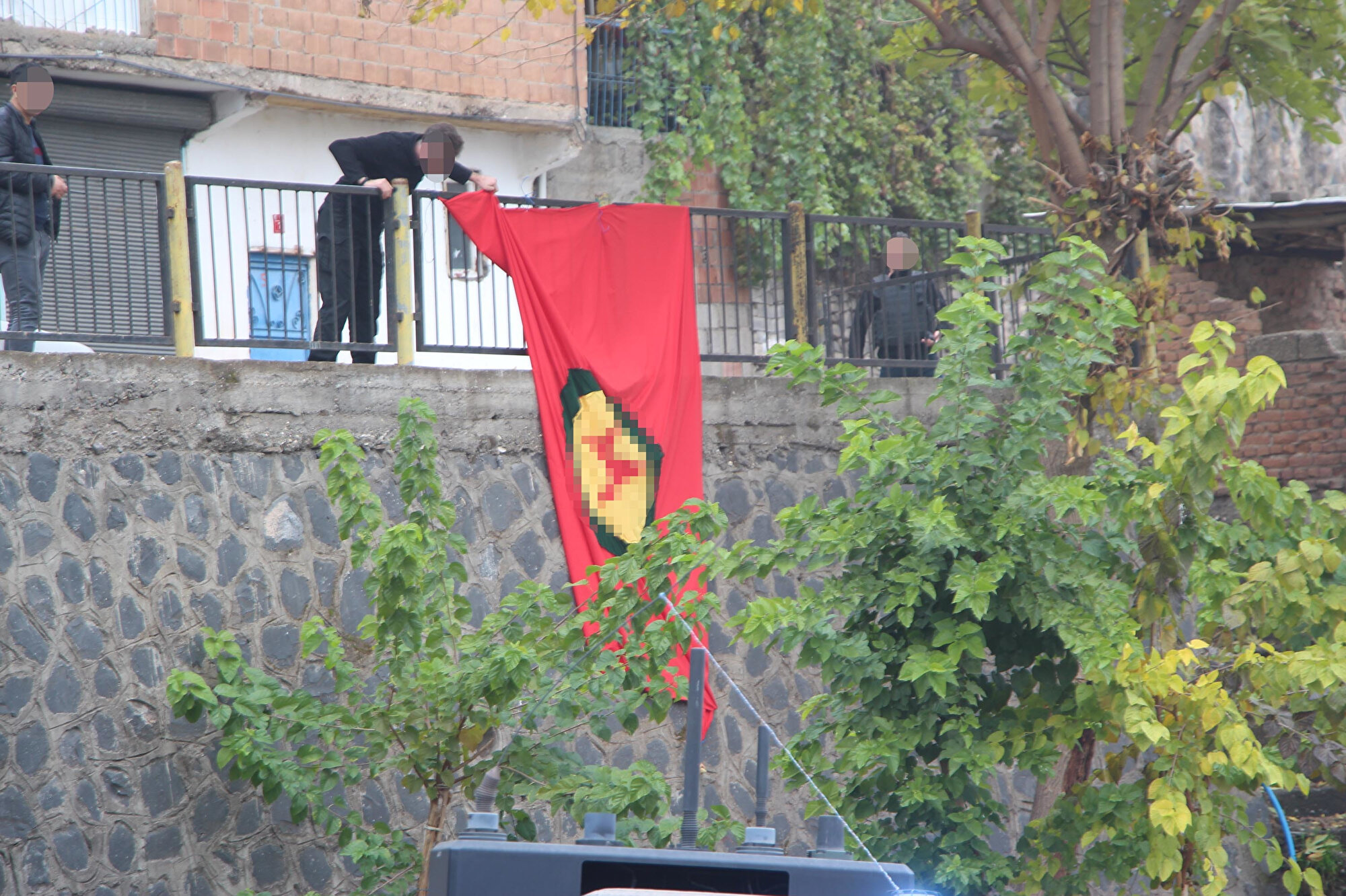 Diyarbakır'ın Yenişehir ilçesinde istinat duvarının üzerindeki demir korkuluğa asılan PKK paçavrası polis ekiplerince indirildi. Polis, şüphelileri yakalamak için operasyon başlattı.