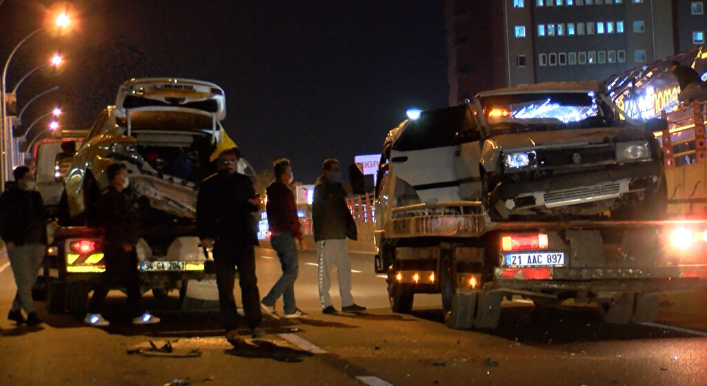 Kaza, akşam saatlerin Diyarbakır-Şanlıurfa karayolunun 7'nci kilometresinde Doğum Hastanesi Köprülü Kavşağı alt geçidinde meydana geldi. Barış Bahçeli yönetimindeki 21 TT 0989 plakalı ticari taksi, aynı yönde hareket halinde olan 53 HL 857 plakalı otomobile arkadan çarptı. Çarpmanın etkisiyle iki otomobil de savrularak refüje ve aydınlatma direklerine çarptı. Hurdaya dönen araçlarda bulunan 4 kişi yaralandı.