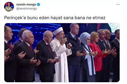 Edilen dua sırasında çekilen bir fotoğraf üzerinden Vatan Partisi Genel Başkanı Doğu Perinçek'i hedef alan gazeteci Nevşin Mengü, "Perinçek'e bunu eden hayat sana bana ne etmez" dedi.