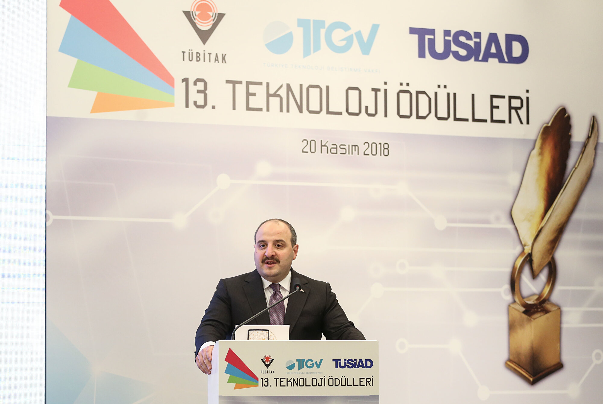 - "Stratejik ürün programıyla, üretimde yerli girdiyi artırmayı ve ithalatı yüksek olan öncelikli ürünlerin yerlileştirilmesini amaçlıyor, işletmelere 5 milyon liraya kadar destek sağlıyoruz. TÜBİTAK aracılığıyla özel sektöre, üniversitelere ve araştırmacılara yönelik teşvikler veriyoruz. Özel sektör için, TEYDEB, sanayi yenilik ağ mekanizması ve bireysel genç girişimci programı desteklerimiz aktif şekilde devam ediyor. Aramızdaki 27 finalistin 638 projesi TÜBİTAK TEYDEB desteklerinden faydalanıyor. Bu firmalara bugüne kadar 345 milyon lira hibe destek ödemesi yaptık."