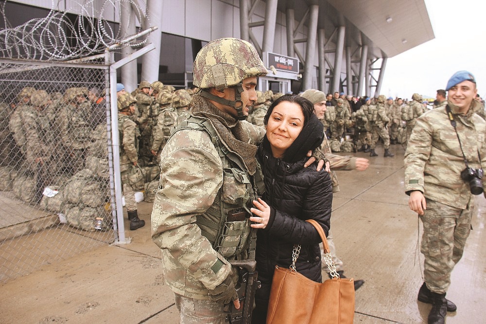 Otobüslerle havalimanına gelen askerler, burada aileleriyle vedalaştı. Bunun yanında Tunceli’deki Hozat 51. Motorlu Piyade Tugay Komutanlığı’nda görevli 2 tabur komando ile Erzurum 109. Topçu Alayı’nda görevli 200 kişilik topçu birliği de tekbirlerle Afrin’e uğurlandı