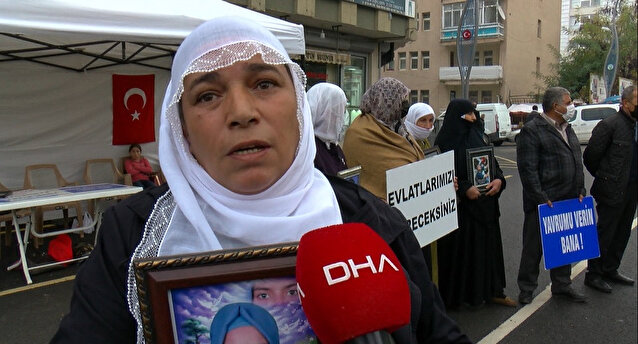 “Kızım Sümeyye Yenilmez’i 2015 yılında okuldan kandırıp, kaçırıp, götürdüler. Kızımı istiyorum, HDP’den kızımı istiyorum. Kızımı bana geri versinler. Ben ölene kadar burada eylemime devam edeceğim. Çocuğumu istiyorum onlardan, bana geri göndersinler."