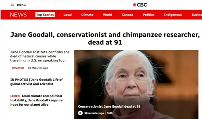 spor haberlerini öne çıkarırken, Kanada medyası Jane Goodall’ın ölümünü manşete taşıdı.