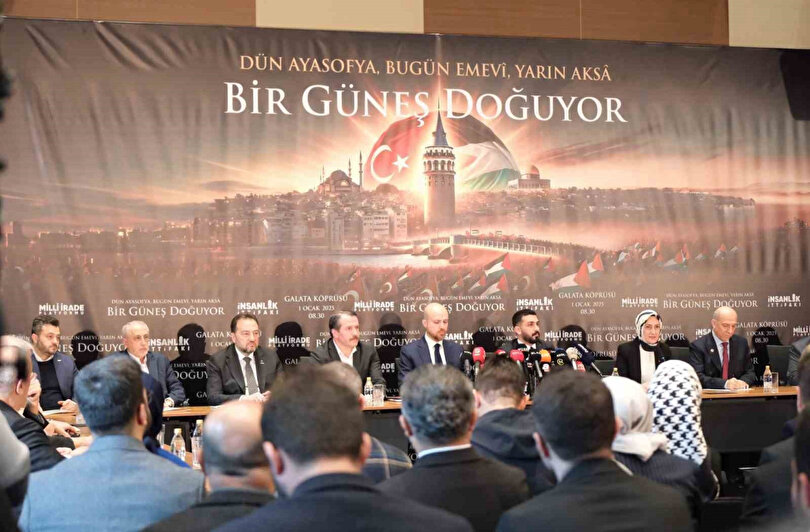 1 Ocak 2025 tarihinde Galata Köprüsü'nde “Dünyayı Uyandırıyoruz”, “Dün Ayasofya, bugün Emevi, yarın Aksa” ve “Bir Güneş Doğuyor”