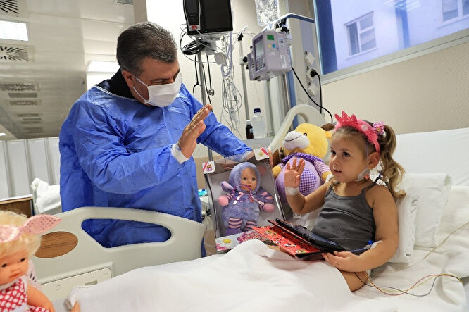 İzmir’de 114 kişinin hayatını kaybettiği depremde 91 saat sonra enkazdan kurtarılarak simge haline gelen 3 yaşındaki Ayda Gezgin’in kendisini ziyaret eden Sağlık Bakanı Koca’dan oyuncak maymun istemesi duygusal anların yaşanmasına neden oldu.