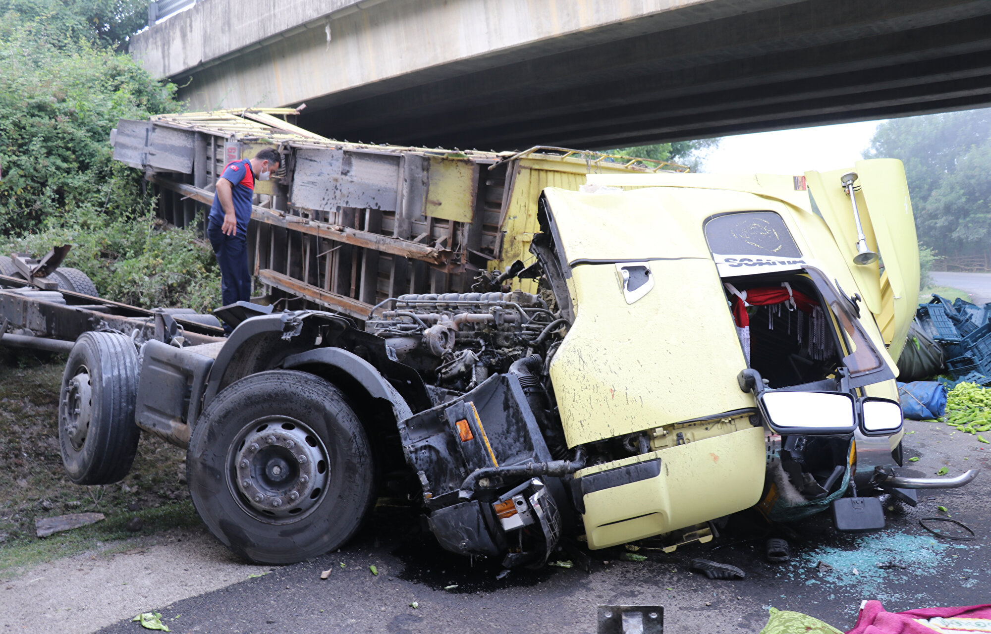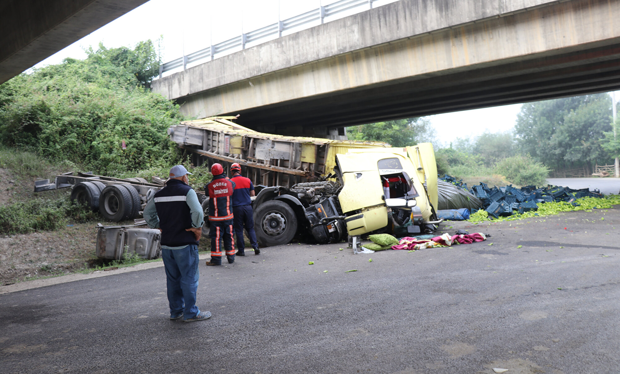 İstanbul yönüne seyreden Ramazan Açar idaresindeki 50 DA 356 plakalı biber yüklü tır, Küçük Melen Köprüsü geçişinde refüjü aşarak iki köprü arasından yaklaşık 5 metre yükseklikten alt yola devrildi.