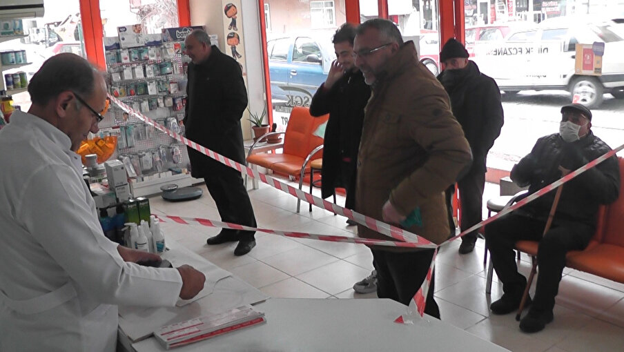 Kentte faaliyet gösteren çok sayıda eczane de tezgahlar önüne şerit çekerek, önlem aldı. Eczacı Fuat Cömertoğlu, bazı müşterilerin alınan önlemlerden memnun olduğunu, bazılarının ise rahatsız olduğunu söyledi.