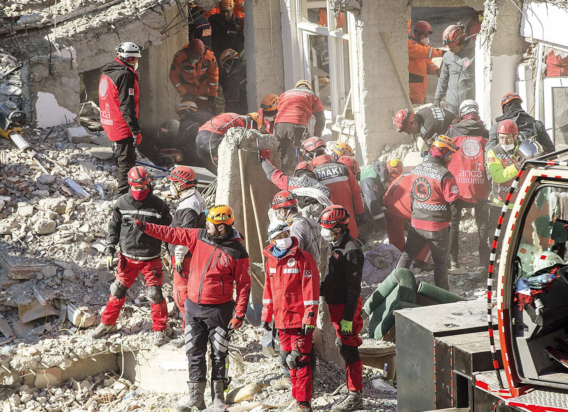 - “O esnada telefonla 112’yi aradık. Yerimizi belli etmek için. Daha sonra onlara kayınbiraderimi aramalarını istedim. Çünkü o evin durumunu biliyor, daha rahat anlatır diye. Daha sonra uyumayalım diye birbirimizle konuşmaya başladık. Ben ve eşim çocuklarımızın sakinleşmesi için onları teselli etmeye çalışıyorduk. O anda açlık yok, susuzluk yok, üşüme yok. Bol bol dua ediyorduk. Onlara uyumamaları için sık sık konuşuyorduk. Sonra kurtarma ekibi geldiğini duyduk. İlk beni çıkardılar. Ben çıkmak istemedim. Sonra çocuklarımı en son da eşim Azize çıkarıldı. Kısacası mezardan çıktık.”