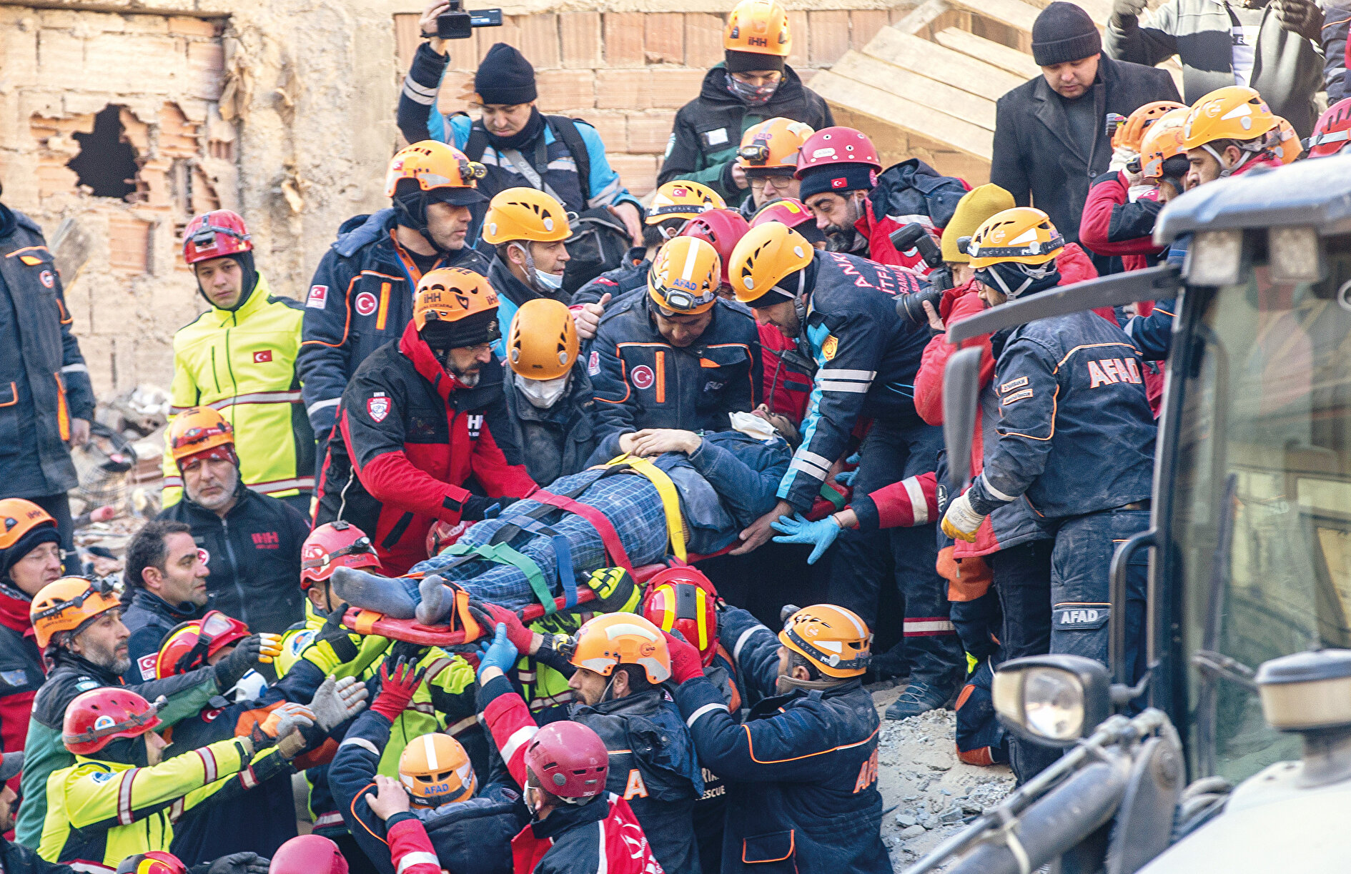 Depremden tam 17 saat sonra ekipler, önce Azize Çelik’in eşini ve oğlu Muhammed’i enkaz altından başarıyla çıkardı; dakikalar sonra da Emine Kuştepe’nin telefonda konuştuğu 45 yaşındaki Azize Çelik de kurtarıldı. Yaralının çıkarılması sırasında çevrede kurtarma çalışmalarını izleyen vatandaşlar ekipleri alkışladı. Tüm Türkiye’nin izlediği telefon konuşması sırasında yaşadıklarını anlatan UMKE personeli Emine Kuştepe, “Azize Hanım’ın iki çocuğu, eşi ve yan tarafta iletişim kuramadığı sadece Kürtçe anlayan yaşlı bir teyze vardı. Ona sakin olmasını söyledim ve özellikle annelik duygularının biraz daha öne çıkmasını istedim. Her anne güçlüdür, işte doğumda nasıl burundan nefes alıp ağızdan sakin sakin verdiysen hepsine o şekilde söyle, ekrana bakıp şarj düzeyini görebiliyor mu, aşağıda bilinci açık mı onları anlamaya çalıştım. Hem Azize Hanım’ın durumunu kontrol ederek hem de yanındaki yaralarımızın ne halde olduğunu merak ettiğim için biraz daha onun Glaskow’unu (şuur durumu) yüksekte tutmaya çalışarak aşağıdaki hastalardan bilgi almaya çalıştım” diye konuştu.