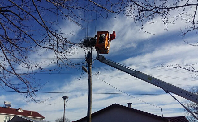 Leylek yuvası bulunduğu tespit edilen elektrik direklerine 70 adet platform yerleştirildi