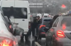 Beykoz'da yol tartışmasında otomobil sürücüsü, aracıyla önünü kestikten sonra darp ettiği otomobil sürücüsüne bıçak çekti. Trafikteki dehşet anları cep telefonu kamerasına yansırken, şüpheli sürücü gözaltına alındı.