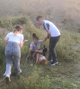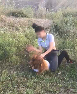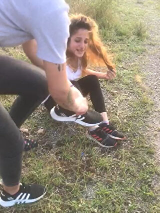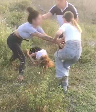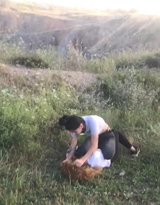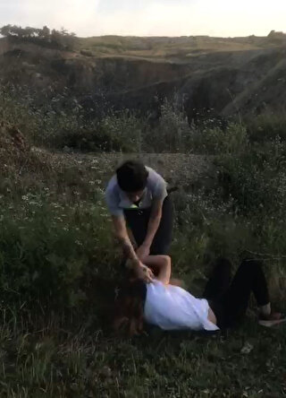 Görüntülerde Çakal'ın yanındaki iki kız arkadaşı tarafından düştüğü uçurum kenarında dövüldüğü görülüyor.