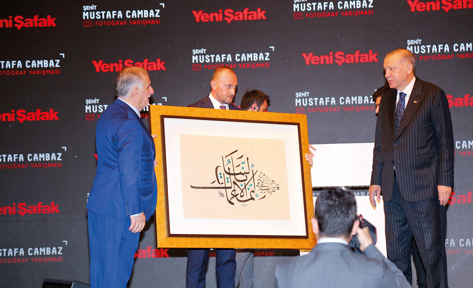 15 Temmuz şehidi foto muhabirimiz Mustafa Cambaz anısına Yeni Şafak Gazetesi tarafından düzenlenen ‘Şehit Mustafa Cambaz Fotoğraf Yarışması’nda dereceye giren yarışmacılar ödüllerini aldı. Törende konuşan Cumhurbaşkanı Erdoğan “ Yarışmaya iştirak eden tüm kardeşlerimizin Şehit Mustafa Cambaz’ın emanetine ve mirasına hakkıyla sahip çıkacaklarını ümit ediyorum” dedi. Albayrak Yönetim Kurulu Başkanı Ahmet Albayrak ve Yeni Şafak Genel Yayın Yönetmeni Hüseyin Likoğlu’nun ev sahipliğinde Çamlıca 1071 Kongre Merkezi’nde gerçekleşen ödül törenine Cumhurbaşkanı Erdoğan, TBMM Başkanı Mustafa Şentop, TBMM Başkan Vekili Celal Adan, Millî Eğitim Bakanı Mahmut Özer ve AK Parti Genel Başkan Vekili Numan Kurtulmuş’un yanı sıra çok sayıda davetli katıldı. Program Çamlıca Camii İmam Hatibi İshak Danış’ın Kur’an-ı Kerim Tilaveti ile başladı. 15 Temmuz hain darbe girişimi ve Şehit Mustafa Cambaz’la ilgili tanıtım filmlerinin ardından, ev sahibi olarak Yeni Şafak Gazetesi Genel Yayın Yönetmeni Hüseyin Likoğlu davetlilere seslendi. Finalist fotoğrafların gösteriminin ardından Cumhurbaşkanı Erdoğan kürsüye geldi.