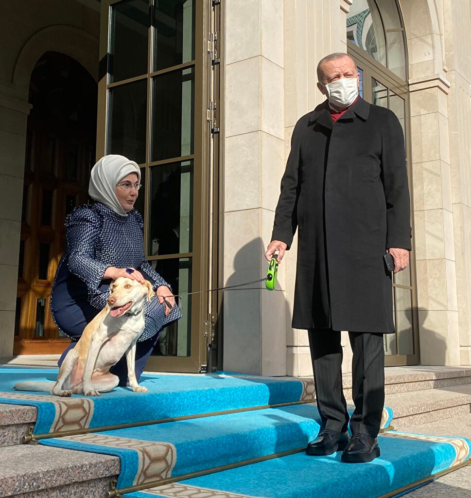Cumhurbaşkanı Recep Tayyip Erdoğan'ın eşi Emine Erdoğan'ın sosyal medya hesabından paylaştığı fotoğraflar büyük beğeni topladı. Emine Erdoğan'ın geçtiğimiz aylarda sahiplendiği Leblebi isimli köpeği ile Cumhurbaşkanı Erdoğan'ı uğurlarken çekilen fotoğraflar kısa sürede binlerce beğeni geldi.