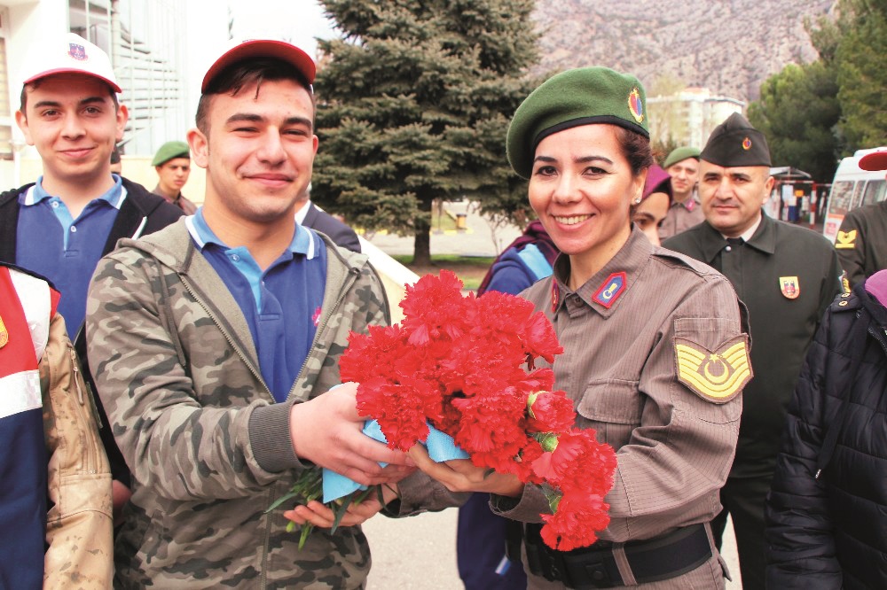 Amasya Anadolu Lisesi öğrencileri, Amasya İl Jandarma Komutanlığı’na giderek askerlere çiçek verdi. Tek tek kucaklaştıkları askerlere moral veren öğrencilerden İsmail Ün, “Biz vatan aşkını asker ağabeylerimizden, şehitlerimizden öğrendik. Bu milletin, bu vatanın sevgilileri onlardır” dedi. Aydın’da Efeler Halide Hatun İlkokulu ana sınıfı öğrencileri de İl Jandarma Komutanlığını ziyaret etti.