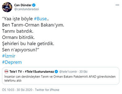 Tarım ve Orman Bakanı Bekir Pakdemirli'nin, enkaz altında kalan Buse ile yaptığı telefon görüşmesi de provokasyonların bir parçası oldu.