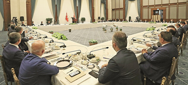 Cumhurbaşkanı Tayyip Erdoğan, Cumhurbaşkanlığı Külliyesi’nde AK Partili belediye başkanlarıyla biraraya geldi.