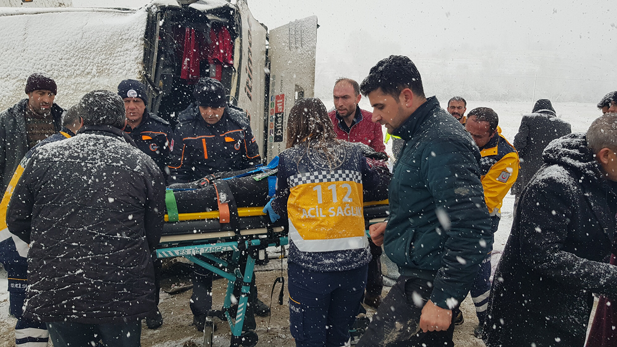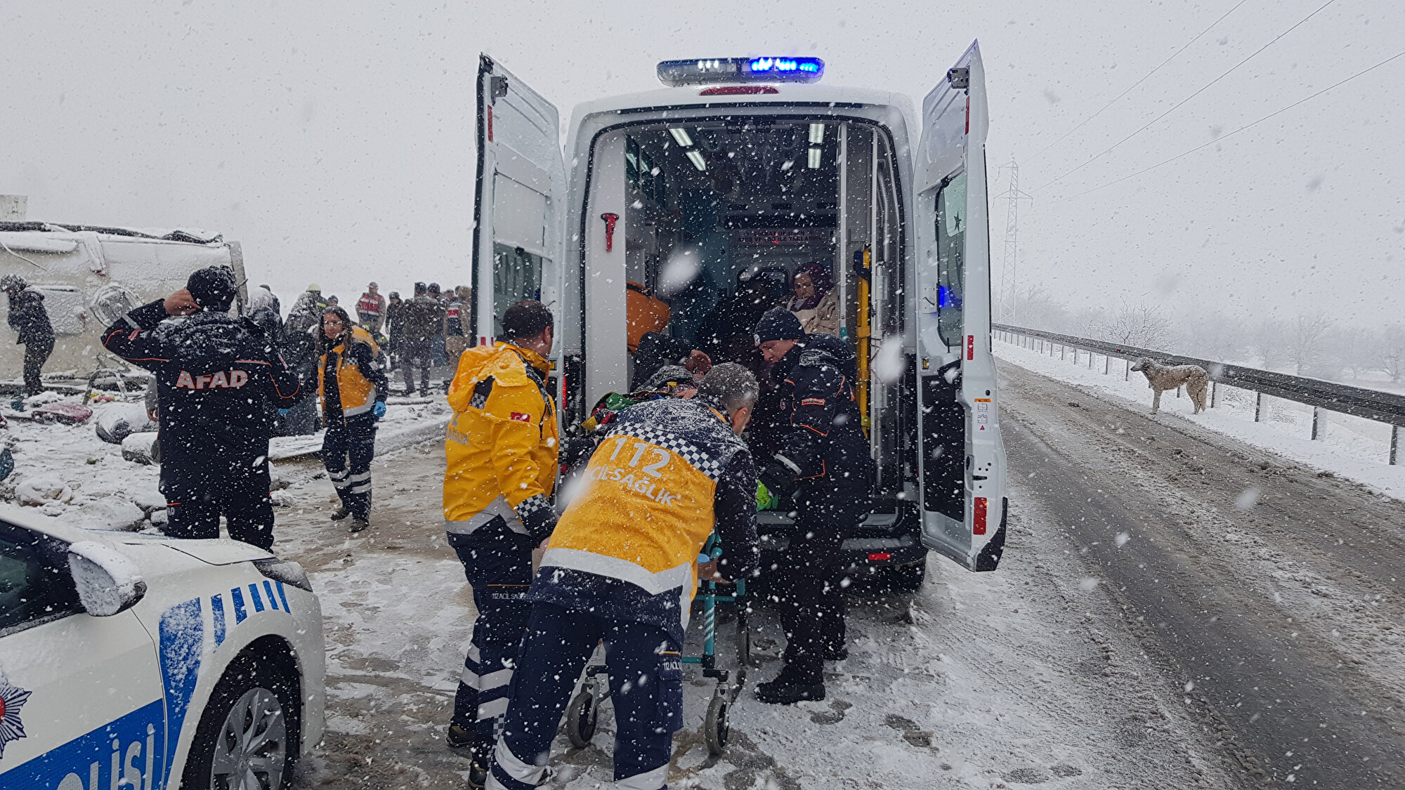 Kazada yaralanan otobüsteki 46 kişi, sağlık ekiplerince çevredeki hastanelere kaldırıldı.