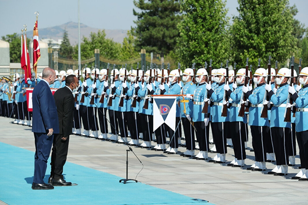Cumhurbaşkanı Recep Tayyip Erdoğan, Türkiye’ye resmi ziyarette bulunan Etiyopya Başbakanı Abiy Ahmed’i resmi törenle karşıladı.
