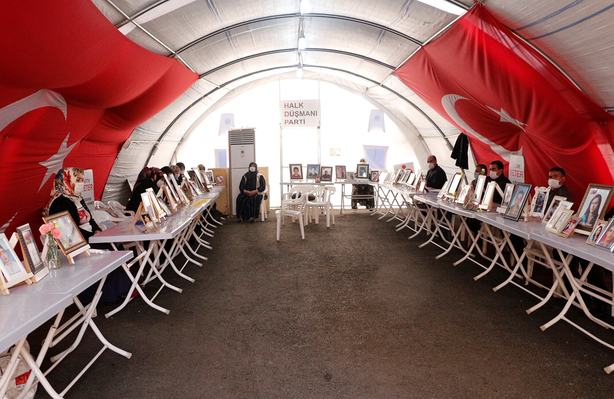 Diyarbakır'da terör örgütü PKK tarafından kaçırılan çocuklarının bulunmasını isteyen 184 ailenin HDP binası önündeki oturma eylemi, 497'nci günde de sürüyor. Oğlu dağa kaçırılan baba, HDP'li milletvekillerine seslenerek, "HDP milletvekilleri, çocuklarını Avrupa'ya gönderiyor; Kürt ailelerinin çocuklarını da mağaralarda ölüme mahkum ediyor. Artık Kürt ailelere vekillik yapın. Nereye kadar Kandil'e vekillik yapacaksınız? Nereye kadar Kandil'e vekillik yapacaksınız?" diye isyan etti.