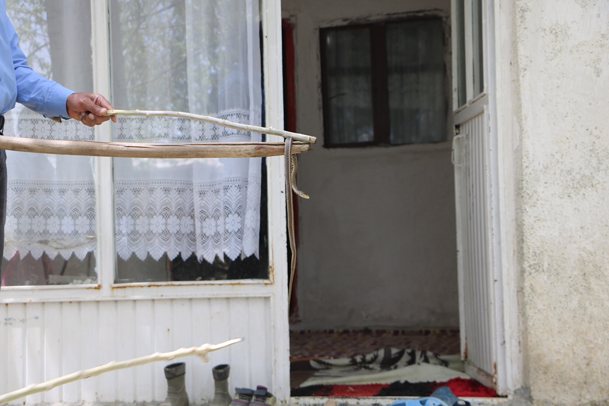 Yüksekova’ya 12 kilometre uzaklıktaki Bataklı köyünde, tek katlı toprak evde yaşayan 6 kişilik Ataş ailesi, havaların ısınmaya başlamasıyla birlikte korku dolu günler yaşamaya başladı. Geçen yıl MS (Multiple Skleroz) hastalığına yakalanan 4 çocuk babası Davut Ateş (39), sıcaklığın artmasıyla birlikte evlerinde boyları 1 metreyi aşan yılanlar görmeye başladıklarını söyleyerek, yetkililerden yardım istedi.