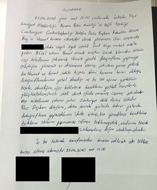 CHP Üsküdar İlçe Başkanı Suat Özçağdaş, 21 Nisan günü öğle saatlerinde İletişim Başkanı Fahrettin Altun'un evini fotoğraflarken polislere yakalanmıştı. CHP Üsküdar İlçe Başkan Yardımcısı Ali Selçuk Kaya ve CHP Üyesi Mehmet Sarıyar’ın da içinde olduğu özel aracı ile Fahrettin Altun’un yaşadığı evinin önüne gelen Özçağdaş’ın cep telefonu ile görüntü çekerken koruma polisleri tarafından fark edilince uzaklaştığı ve koruma polislerine “yine geleceğim” dediği öğrenilmişti.