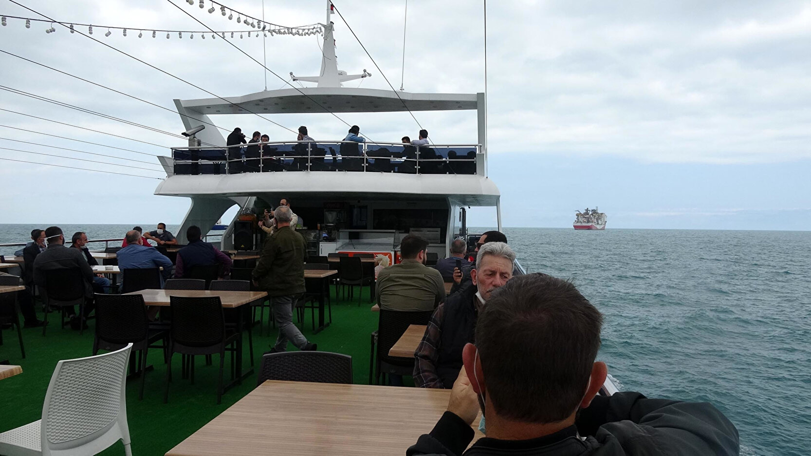 Karadeniz'de ilk sondaj faaliyetini gerçekleştirmek için İstanbul'dan uğurlanıp, Trabzon'a gelen Fatih Sondaj Gemisi'ni yakından görmek isteyenler için turlar düzenlenmeye başlandı. Karadeniz açıklarında demirleyen gemiyi tur sayesinde yakından görenler, selam veriyor, cep telefonu kameralarıyla kayda alıyor.