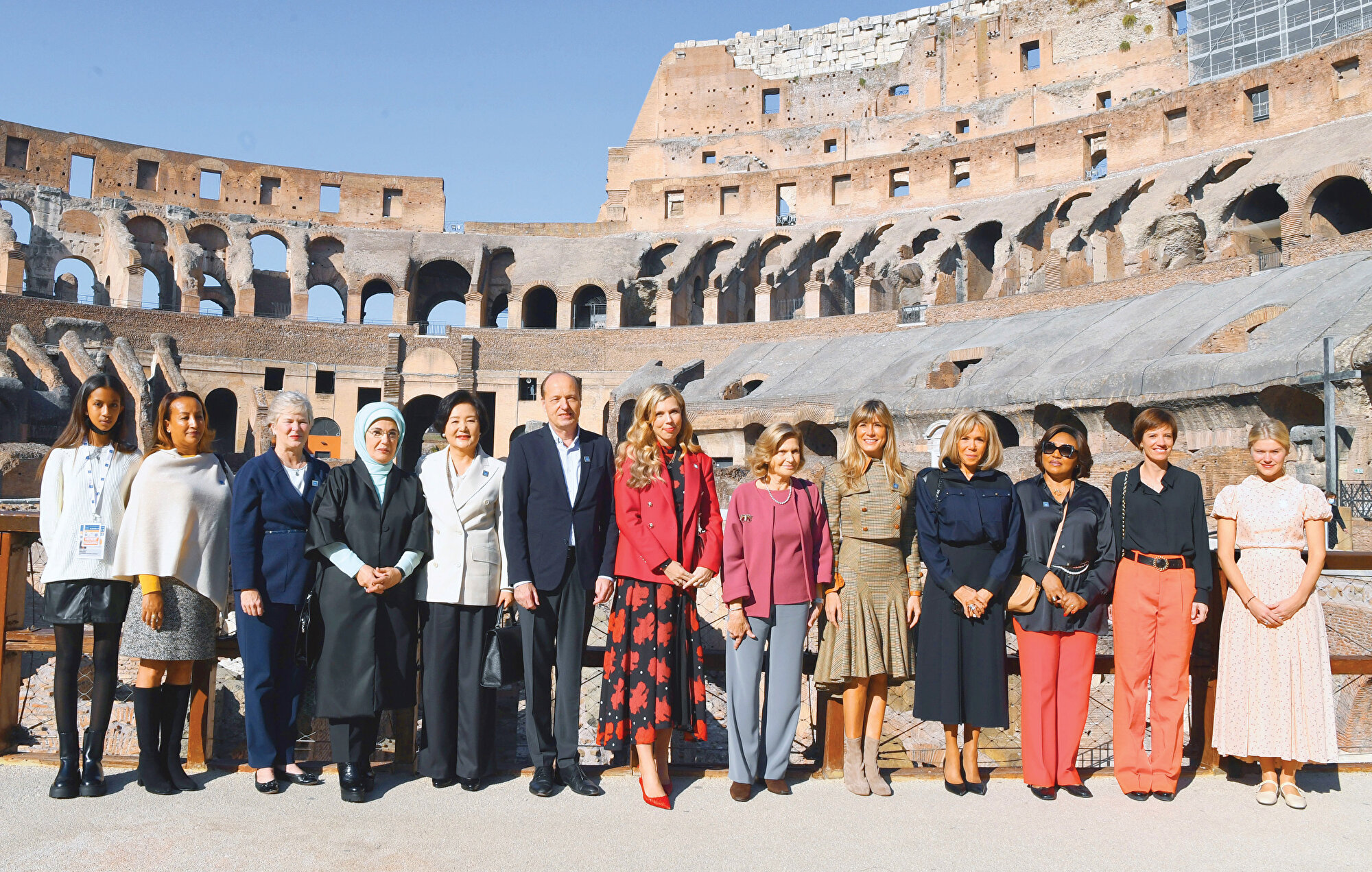 Cumhurbaşkanı Erdoğan’ın G-20 Liderler Zirvesi’ne katılmak üzere İtalya’nın Roma kentine gerçekleştirdiği resmi ziyarete eşi Emine Erdoğan da eşlik etti. Emine Erdoğan, Roma’da ilk olarak, zirvenin ev sahibi İtalya Başbakanı Mario Draghi’nin eşi Maria Serenella Cappello ve liderlerin eşleri ile bir araya gelerek, tarihi yapı Kolezyum’u gezdi. Ardından Emine Erdoğan, Maria Serenella Cappello’nun verdiği öğle yemeğine katılarak, lider eşleri ile bir süre sohbet etti. Yemeğin ardından Maria Serenella Cappello, Emine Erdoğan ve lider eşlerine Giardino all’İtaliana adı verilen bahçeyi gezdirdi.
