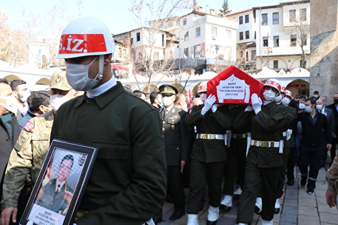 Namazın ardından askerlerin omuzlarına alınan şehidin naaşı son yolculuğuna uğurladı. Şehit Hüseyin Sarı’nın naaşı, Şeyh Adil Mezarlığı Şehitliği’ne defnedildi.