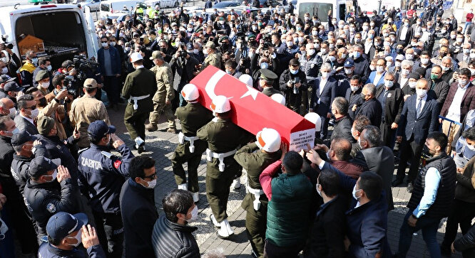 - Şehidin eşi Emine Sarı ise, kocasının üniforması ve kepini giyerek törene katıldı. Tabuta ağlayarak sarılan şehidin eşi, "Bekle dedin, bekledim" diye feryat etti.