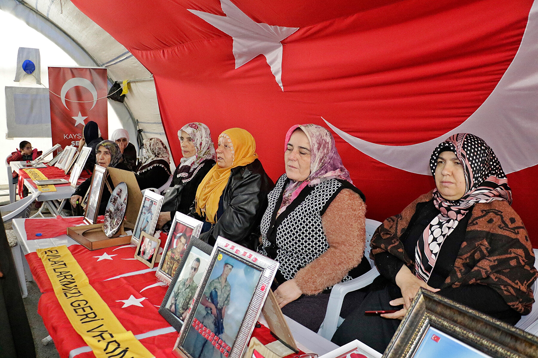 Çeşitli tarihlerde terör örgütü PKK tarafından kaçırılarak alıkonulan ve şehit edilen polis memurları Sedat Yabalak ile Vedat Kaya, Astsubay Çavuş Semih Özbey ve erler Adil Kabaklı, Müslüm Altıntaş ve Süleyman Sungur'un ailelerinin Diyarbakır'da HDP binası önünde evlat nöbetinde olduğu ortaya çıktı.