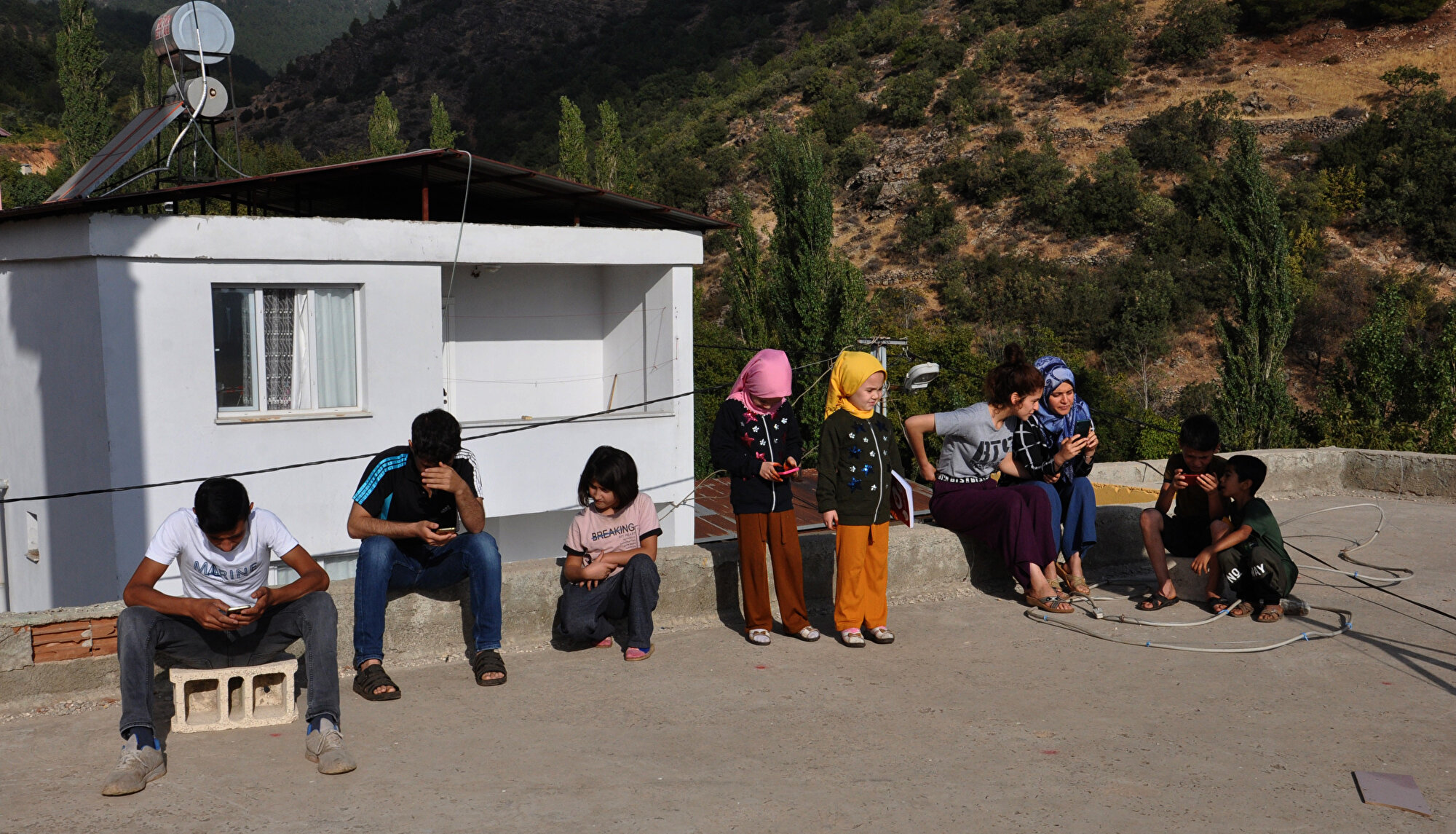 Aralarında ilkokul, ortaokul, lise ve üniversite öğrencilerinin de yer aldığı genç ve çocuklar derslerinden geri kalmamak için ilginç bir yol bularak mahallede internetin çektiği tek yer olan cami terasına çıkmaya başladı. Ders saati gelen öğrenciler, ellerine aldıkları tablet ve cep telefonları ile çıktıkları terasta anlatılan canlı derslere katılım sağlıyor. Öğrenciler, kış gelmeden yaşanan internet sorununun çözüm bulmasını istiyorlar.