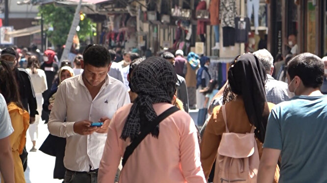 İnsan yoğunluğunun yaşandığı Gaziler Çarşısı’nda ise sosyal mesafe kuralı adeta hiçe sayılıyor.