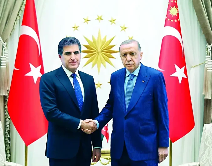 Cumhurbaşkanı Erdoğan, Irak Kürt Bölgesel Yönetimi (IKBY) Başkanı Neçirvan Barzani’yi kabul etti. Görüşmede, Türkiye ile Irak ilişkileri, IKBY ile işbirliği ve bölgesel gelişmeler ele alındı. Irak Merkezi Hükümeti ile IKBY arasında petrol alanında varılan mutabakatı memnuniyetle karşıladığını belirten Erdoğan, Kalkınma Yolu Projesi ile ilgili uzlaşının da kısa vadede sağlanmasının tüm bölgenin menfaatine olacağını kaydetti. Erdoğan, Terörsüz Türkiye sürecinin başarıya ulaşmasında kararlı olduklarını belirtti.