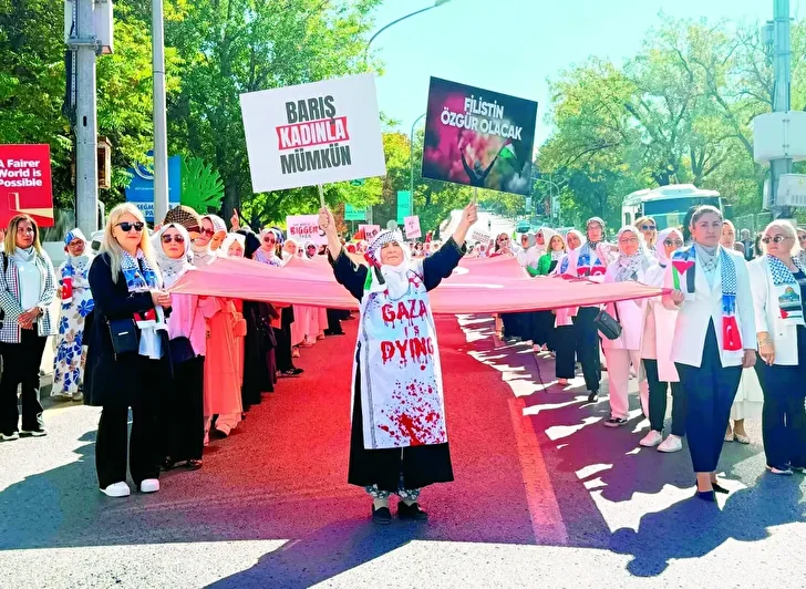 AK Parti Kadın Kolları Genel Başkanı Tuğba Işık Ercan da Gazze'nin sessiz çığlığına ses olmak için kadınların el ele verdiklerini tüm dünyaya göstermek amacıyla meydanlarda olduklarını söyledi. Ercan, “Bu mesele ne dünyadaki rollerimizle ne taşıdığımız ünvanlarla ne de sahip olduklarımızla ilgilidir. Bu mesele, insanlık meselesidir. Bugün Türkiye'den tüm dünyaya tek bir şey söylüyoruz, barış kadınla mümkündür. Slogan atmıyoruz vicdanlarımızla haykırıyoruz. Çünkü bazı sessizlikler vardır ki arşı yere indirir ve bizim sessizliğimiz, Gazze'nin en gür çığlığı olacaktır” ifadelerini kullandı.