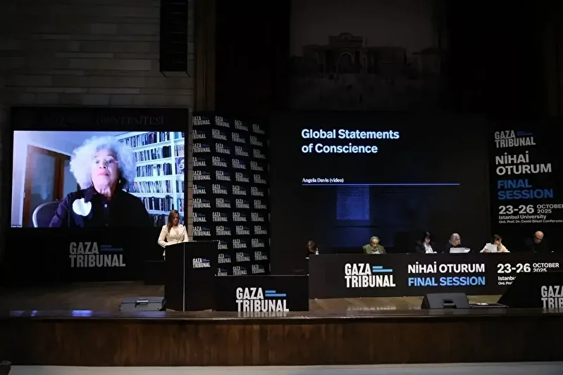 İstanbul Üniversitesi Prof. Dr. Cemil Bilsel Konferans Salonu'nda düzenlenen Gazze Mahkemesi’nin Nihai Oturumunun ikinci günü Kaliforniya Üniversitesi'nden eğitmen Angela Davis’in video mesajı ile başladı. Davis, “Biz Filistin halkıyla beraberiz. Bu felaketi ve taarruzları hak edecek bir şey yapmadılar. Kolonileşmenin en yıkıcı saldırılarına karşı duruyorlar. Filistinliler ayağa kalkıyor” dedi.