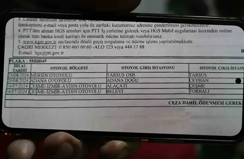 "Bana gelen tebligatta ücretli otoyola girdiğim ama ücret ödemediğim belirtiliyor. Ben Sivas’ta ikamet etmeme rağmen İzmir, Alaçatı, Çeşme, Adana ve Pozantı ücretli geçişlerinden ücret ödemeden geçtiğim için ceza belgesi geldi. Mecburen ödemeyi yaptım, şimdide itirazımı yapacağım. 2024 yılının 7. ve 8. aylarında bu geçişlerin yapıldığı belirtilmiş. Bu tarihlerde ben Sivas’taydım. Hayretler içerisindeyim. Bu nasıl oluyor bilemiyorum. Küçük bir miktar geldi ama büyük bir miktarda gelebilirdi. Bu hatalar ödeyemeyecek gücü olanları mağdur edebilir"