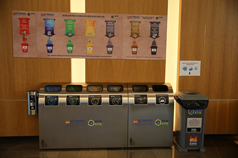 İlk olarak Zeytinburnu Belediyesi Hizmet Binası’ndan başlatılan dönüşüm çalışmasında, bina içerisindeki çöp kovaları toplandı, ortak alanlara ayrıştırılmış atık biriktirme ekipmanları yerleştirildi. Hizmet Binası’nın arka alanında oluşturulan tehlikeli ve tehlikesiz atık geçici depolama alanı oluşturularak, aylık 2 bin 500 ton değerlendirilebilir atık, kompost makineleriyle geri dönüştürüldü.