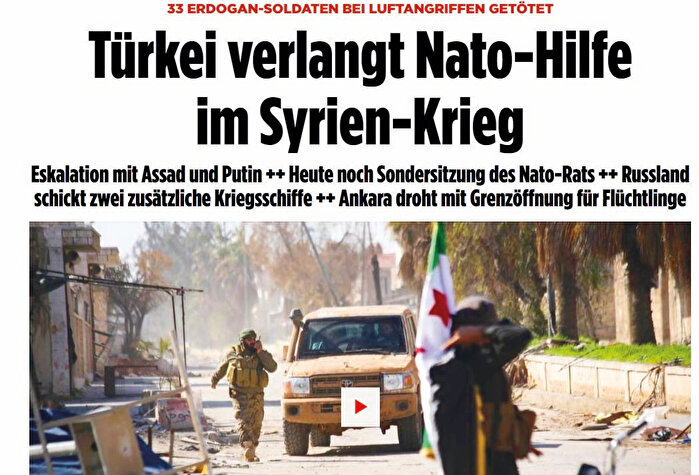 Financial Times (FT) ile birlikte Alman Bild gazetesi de saldırı sonrası NATO’nun gündeme geldiğine işaret etti. Türkiye, Nato üyesi müttefiklerinden destek çağrısını yineleyecektir. Şimdiye kadar hiçbir Nato üyesi 5. Maddenin resmi olarak devreye girmesi için görüşmelerde bulunmadı.” Bild gazetesi de saldırı sonrası Türkiye’nin NATO’yu acil toplantıya çağırmasını öne çıkardı.