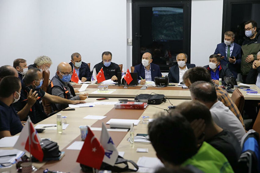 Tüm arama kurtarma ekiplerinin seferber edilmiş durumda olduğuna dikkati çeken Soylu, "AFAD ekiplerimiz çevre illerden şu anda intikal halindeler. Jandarma arama kurtarma timleri hem Ankara'dan hem de Rize'den intikal halindeler. Ankara'dan gelen Samsun'a kadar geldi." ifadesini kullandı.