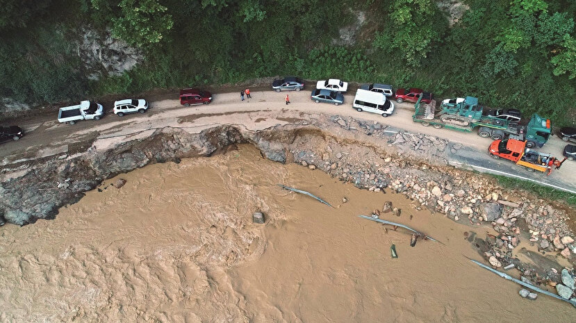 - Şiddetli yağışın ardından bazı bölümleri çöken Dereli-Giresun yolu havadan görüntülendi. Yer yer neredeyse yarı kısmının çöküp dereye karıştığı görülen yolda, özellikle Duroğlu beldesi ile Çalca mevkisi arasında kalan güzergâhta trafik sıkışıklığı oluştu. Dereli’deki Akkaya Deresi üzerinde bulunan köprü de sel nedeniyle yıkıldı. İş makineleri, ilçeyi Sivas’a bağlayan köprünün yıkılıp kapadığı su yolunun yeniden açılması için çalışıyor. Yağlıdere-Espiye, Yağlıdere-Üçtepe yolu ile menfez çökmesi sonucu Tirebolu-Doğankent kara yolunda ulaşım sağlanamıyor. Doğankent ilçe merkezinde de köy yolları hasar aldı, iş yerleri ile binaların zemin katlarını su bastı. Bazı araçların su ve toprak altında kaldığı ilçenin köylerinde büyükbaş ve küçükbaş hayvanlardan bir kısmı taşkın nedeniyle telef oldu.