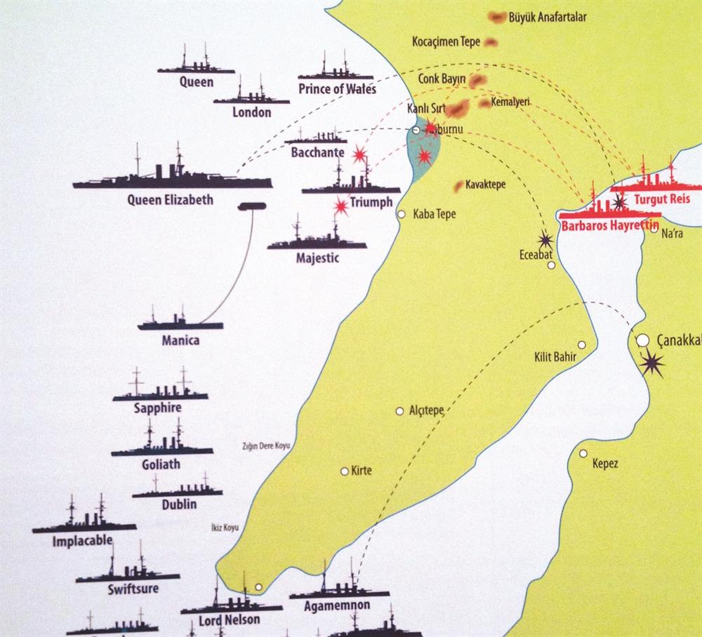 Yıl 1915… Çanakkale Boğazı önüne 103 parça gemiyle gelen İngiliz ve Fransız donanması, 18 Mart saldırısından hezimetle çıkınca, 'denizden top desteğiyle kara savaşları' kararı alır. İtilaf kuvvetleri çıkarma harekatıyla Türk askerlerine saldırırken ilginç şeyler olmaktadır. Devrin en etkili savaş gemisi Queen Elizabeth, 18 km uzaktaki hedefi vurabilen 38 cm çaplı 8 adet topuyla Ege Denizi tarafındaki Arıburnu-Kabatepe sahiline yerleşmiştir. Ve aşırtma atışlarla boğazın iç tarafında, Eceabat'ın kuzeyinde bekleyen Barbaros Hayreddin ve Turgut Reis zırhlılarımızı vurmaktadır. Queen Elizabeth'in Ege'den gönderdiği top mermileri bazen Çanakkale'ye bile düşmektedir. Bu arada Çanakkale zaten, boğaz girişine yerleşmiş Agamemnon zırhlısının 12 km'den attığı topların gümbürtüsüyle inlemektedir.