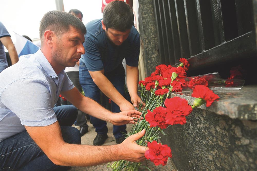 Rusya’nın başkenti Moskova’da düzenle nen törenle şehitler anıldı. Vatan Milletle rarası Ahıska Türkleri Cemiyeti mensubu bir grup, ellerinde Türk ve Rus bayrak larıyla büyükelçi-lik binası önüne gelerek şehitler için büyükel çilik tabelasının altına karanfil bıraktı.