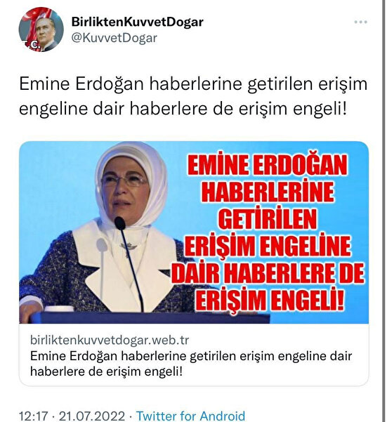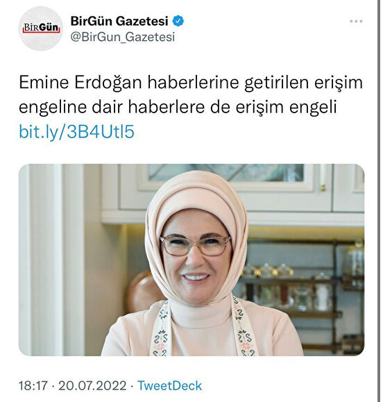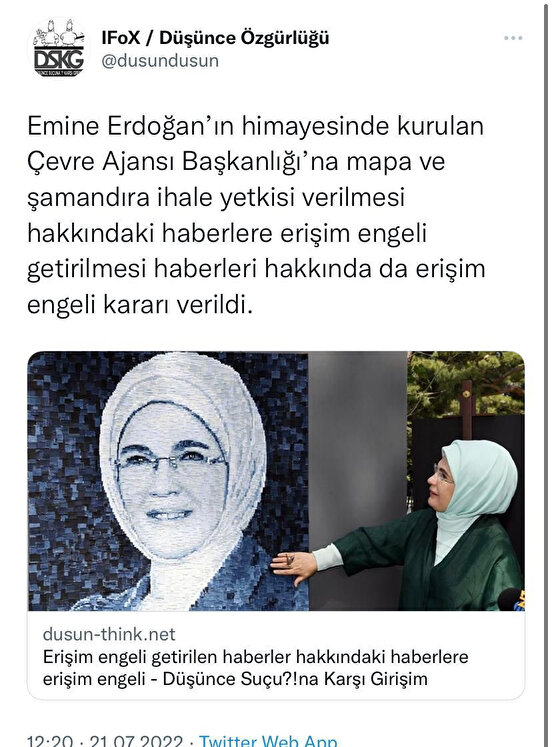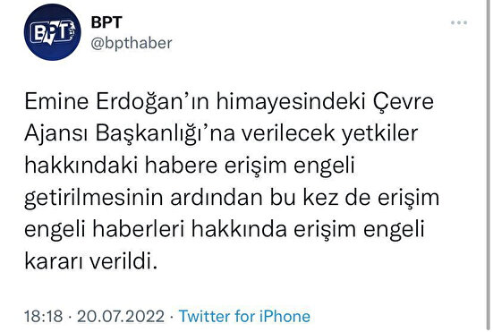 BirGün Gazetesi, Çevre, Şehircilik ve İklim Değişikliği Bakanlığı'na bağlı olarak kurulan Çevre Ajansı'nın Cumhurbaşkanı Erdoğan'ın eşi Emine Erdoğan'ın himayesinde kurulduğunu ve ihalelerde şahsının yetkili olacağı yönünde ifadelere yer vermişti. Yapılana algı operasyonuyla da yetinmeyen gazete, Emine Erdoğan haberlerine getirilen erişim engeline dair haberlere de erişim engeli’ getirildiğini iddia etti. Sosyal medyadaki troll hesaplar ise bu yalan iddiaları yayarak bilgi kirliliğine neden olup kamuoyunu yanlış yönlendirdi.