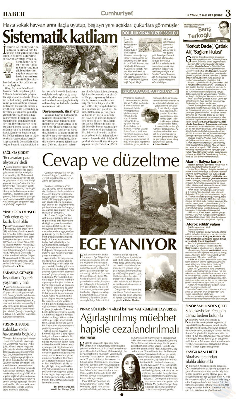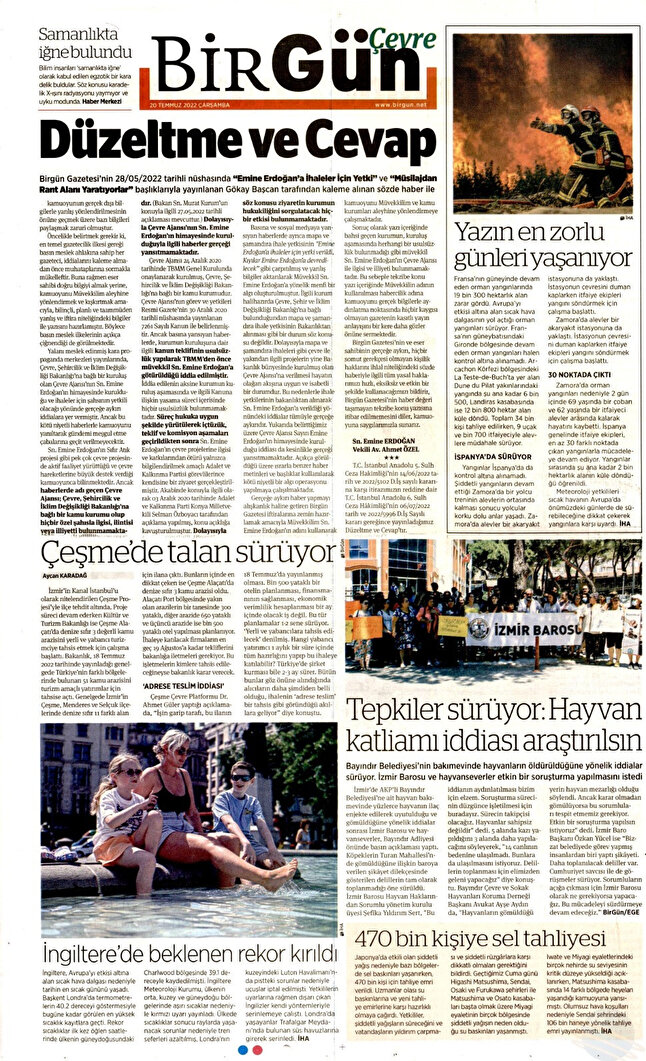 Her fırsatta yalan haber ve algı operasyonuyla kamuoyunu yanlış bilgilendiren CHP yandaşı BirGün Gazetesi, yeni bir skandala daha imza attı. Gazete, Çevre Ajansı'nın Emine Erdoğan'ın himayesinde kurulduğunu ve ihalelerde şahsının yetkili olacağı yönünde iddialar ortaya atmıştı. Bununla da yetinmeyen gazete ‘Emine Erdoğan haberlerine getirilen erişim engeline dair haberlere de erişim engeli’ getirildiğini öne sürmüş, troll hesaplardan asılsız iddialar yayılmıştı. Erdoğan'ın avukatı mahkemeye başvurdu ve yargılama süreci tamamlandı. Haberlerden dolayı gazetenin tekzip yayınlamasına karar verildi.