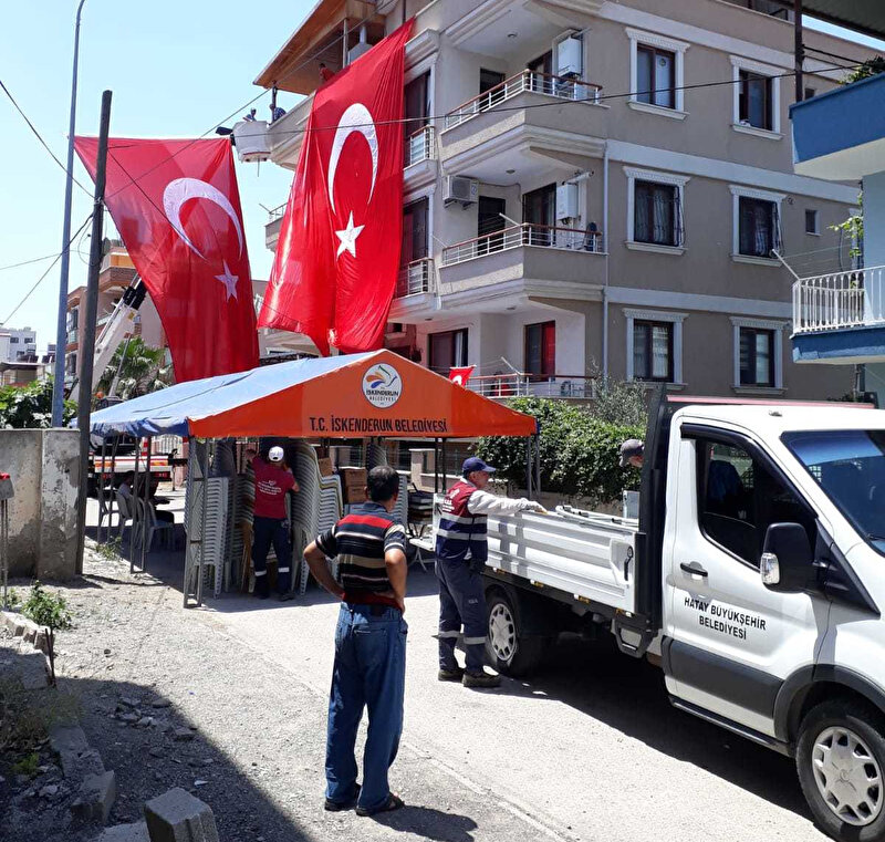 İskenderun ve Büyükşehir Belediyesi ekipleri, taziye çadırı kurdu.