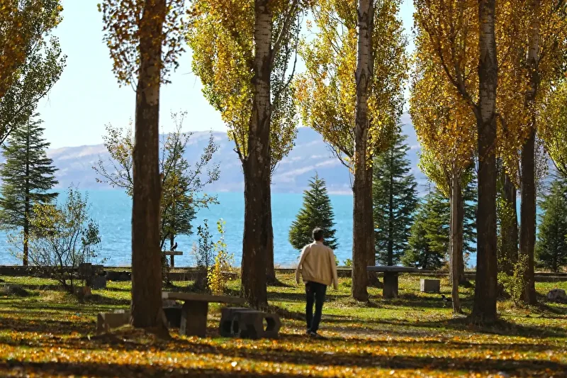 Elazığ'ın Sivrice ilçesindeki Hazar Gölü, sonbahar renkleriyle harmanlanan doğasıyla fotoğrafçılar ve doğaseverler için güzel manzaralar sunuyor.